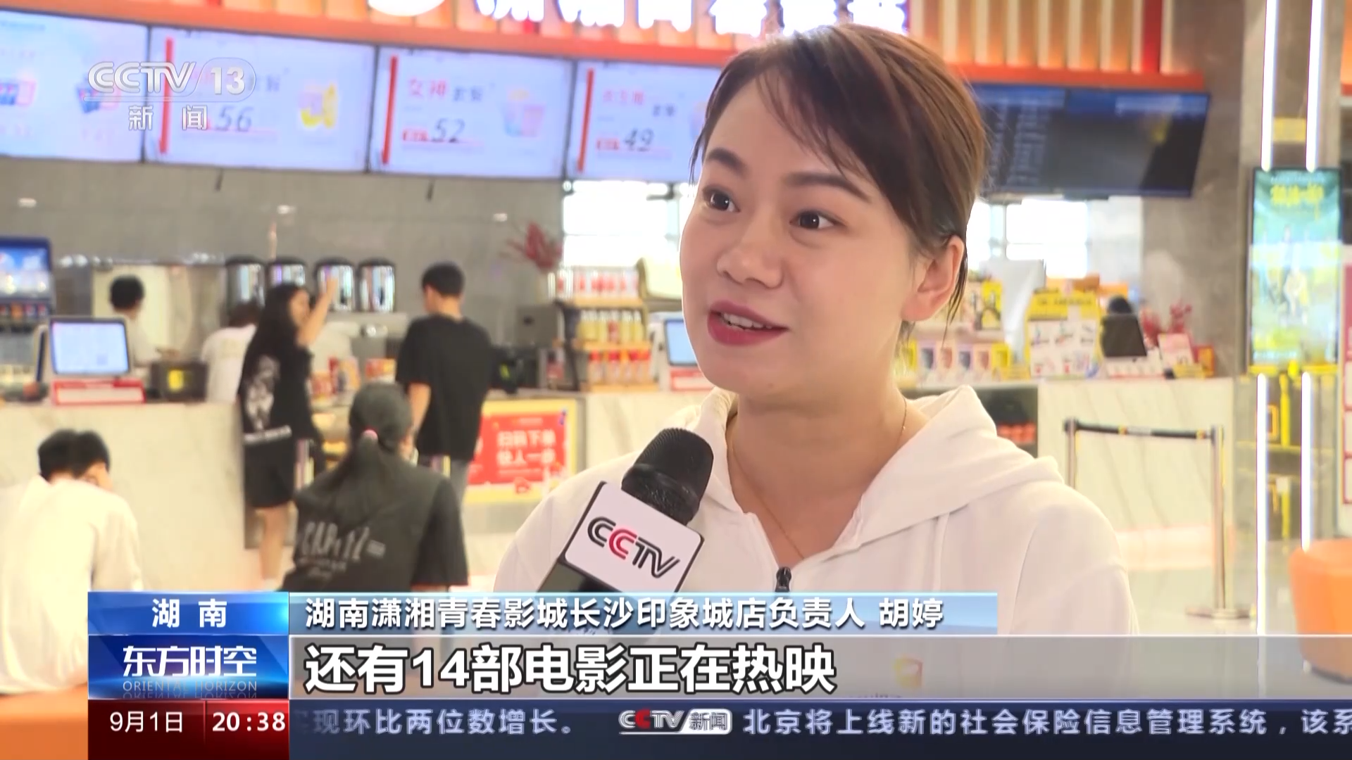湖南潇湘青春影城长沙印象城店负责人 胡婷:在暑期档的尾声的话,还有14部电影正在热映,每天接待的观影人次将近4000人,我们的排片日均也达到了40场。
