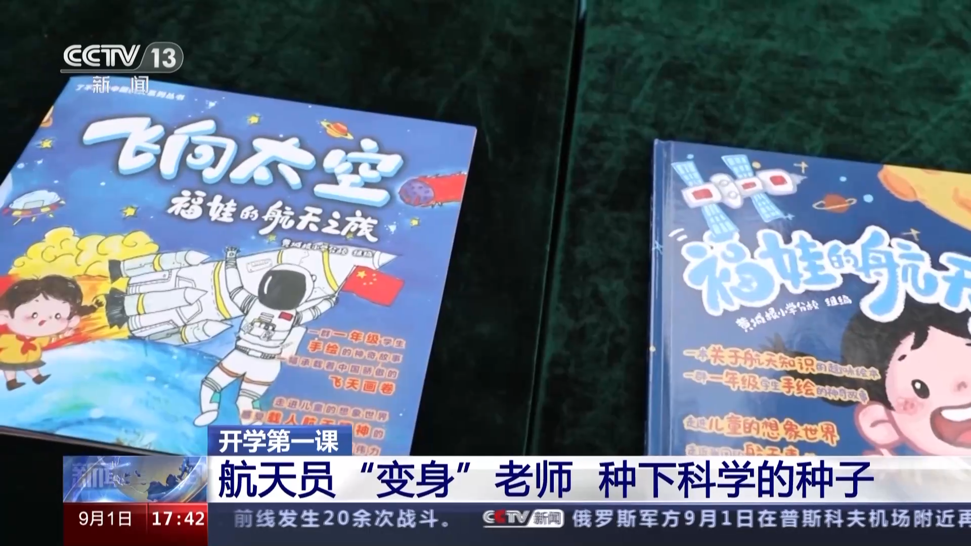 开学典礼上,一年级新生们还收到了一本航天主题科普绘本。“神舟”飞天、“嫦娥”奔月、“北斗”指路、“祝融”探火,这本由本校小学生们原创的科普绘本,记录了孩子们对探索太空、逐梦星辰大海的向往。
