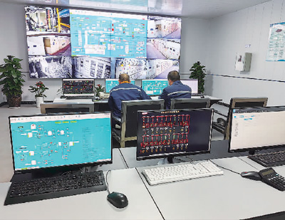 工作人员在双钱集团重庆公司动力控制中心值班。该中心整合了公司能源计量系统,搭建起动力系统数字化平台,为碳管理打下数据基础。受访者供图