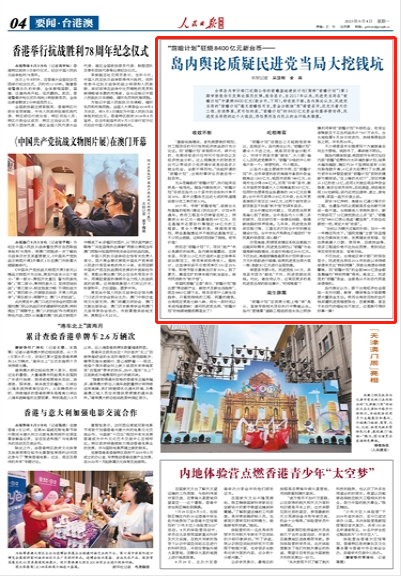 岛内舆论认为,眼下台湾经济社会面临一系列问题,教育、健保等各方面都需要大量资金支出。然而台湾老百姓的血汗钱却遭民进党暗度陈仓、恣意挥霍,甚至子孙后代的福祉也不放过,这笔账可得好好算一算!(记者 吴亚明 金 晨)