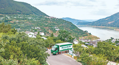 重庆市巫山县曲尺乡柑园村,满载脆李的冷链物流车驶出。