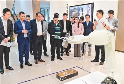 在自动检测产品外观缺陷的视觉质检机器人前,使节们停下脚步,饶有兴致地观看。火龙说:“在数字经济推动下,人工智能等技术与传统工业深度结合,让人耳目一新。”