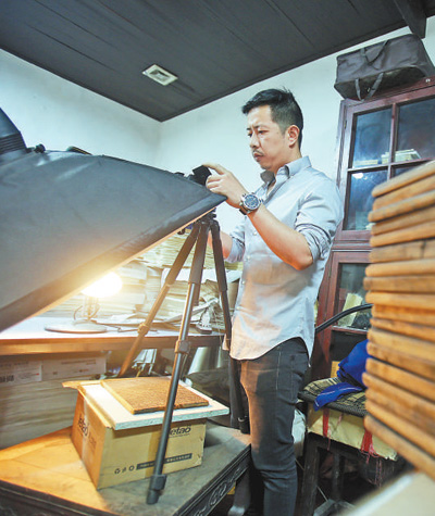 2010年,国家启动了“嘉业藏书楼版片保护工程”。郑宗男和父亲更忙了。冲洗、阴干、著录……父子俩每天重复着一件事:把雕版从架子上取下,逐一清洗干净并阴干,之后整理排序、拍照存档,再用宣纸进行刷印、装订成册。