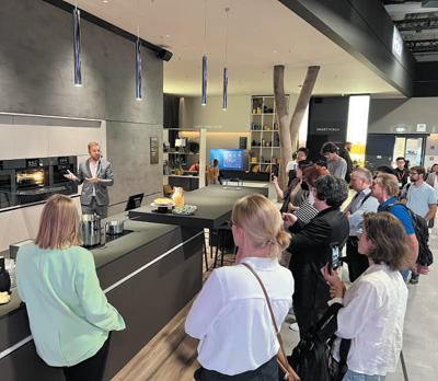 在2022年柏林国际消费电子展期间,参观者在卡萨帝展台前了解智能厨房设备。
