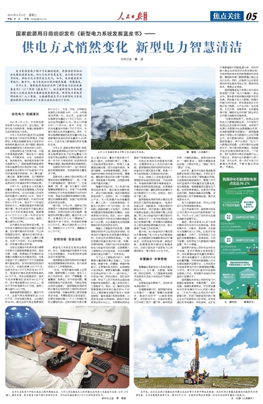 今年6月,国家能源局组织发布《新型电力系统发展蓝皮书》(以下简称《蓝皮书》),标志着新型电力系统建设进入全面启动和加速推进的重要阶段。新型电力系统有哪些特点?人工智能、大数据等技术可以为新型电力系统建设提供怎样的助力?本报记者就此进行了采访。