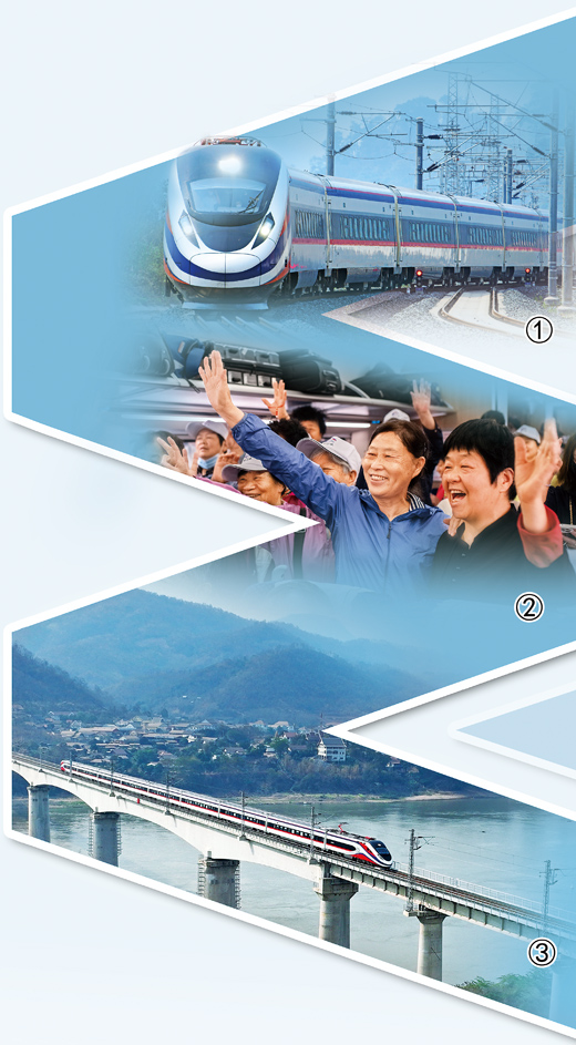 图③:“澜沧号”动车组驶过老挝湄公河特大桥。