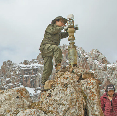 记者取道曲麻莱、杂多,向着长江源区出发。草原延展到远山脚下,一抹抹“迷彩绿”跃动其间——青海省玉树藏族自治州曲麻莱县“大自然摄影队”的队员们正在寻找雪豹的踪迹。