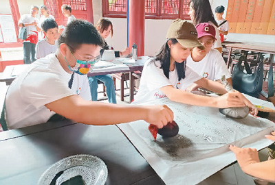 两岸青年参访萍乡孔庙博物馆,体验拓印技艺。萍乡市台办供图