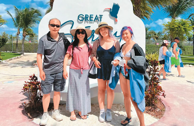 二〇二二年三月,黄宗之与家人在加勒比海岛合影,左一为黄宗之。受访者供图