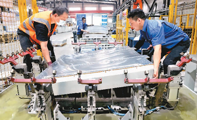 福建省宁德市东侨经济技术开发区持续推进税费优惠政策扎实落地,助力企业发展。图为9月7日,开发区一家新能源科技企业生产车间,工人赶制新能源汽车动力电池壳产品。王旺旺摄(人民视觉)