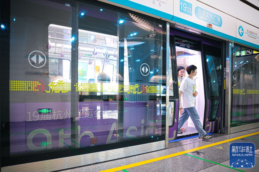 2023年5月16日,杭州地铁“亚运号”专列正式上线运行。目前,该专列运用于连接了杭州萧山国际机场、杭州火车东站、杭州火车西站三大交通枢纽的杭州地铁19号线,为杭州市民与海内外宾客展现流动的亚运风景线,点缀城市的亚运氛围。