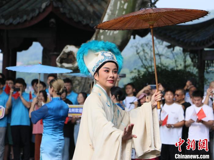 来自黄龙越(杭)剧团的国家二级演员余玉蝉,当日在《白蛇传》中饰演小青,她告诉记者,“以前大家都是在剧场、在舞台上演出,这是第一次来到断桥前,以西湖为背景,讲述发生在杭州且家喻户晓的许仙与白娘子的故事,能够在火炬传递的现场进行演绎非常开心。”