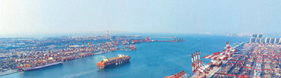 今年以来,山东港口青岛港新增多条面向“一带一路”国家的航线。图为8月17日,一艘集装箱货轮缓缓离开码头。