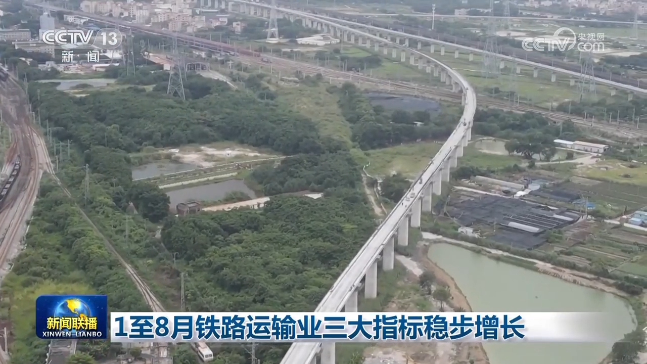 央视网消息(新闻联播):国铁集团最新数据显示,前8个月,全国铁路固定资产投资、旅客发送量、货物发送量三大指标稳步增长。