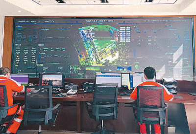 海南中海石油码头有限公司智能化生产指挥中心里,工作人员正进行远程监测和调度管控。