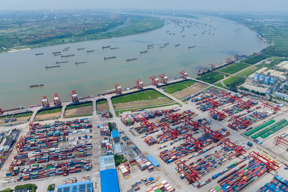 7月5日拍摄的武汉阳逻港一期码头(无人机照片)。新华社记者 伍志尊 摄