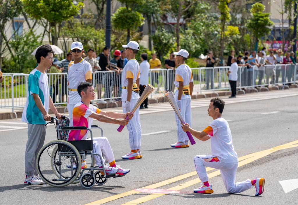 9月13日,火炬手罗瑜在火炬传递中。新华社记者 黄宗治 摄