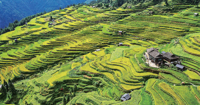 “哇!”“真美啊!”随着大巴车缓缓驶入贵州省从江县的月亮山腹地,加榜梯田的壮阔美景逐渐映入眼帘,车内响起一阵又一阵赞叹声。层层叠叠的梯田与零星散落的民居,让我误以为闯入了世外桃源。