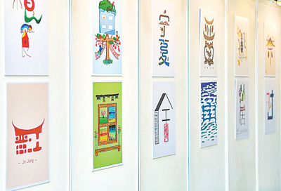 “字在我心”汉字创意优秀作品在北京国际汉语研修学院展出。
