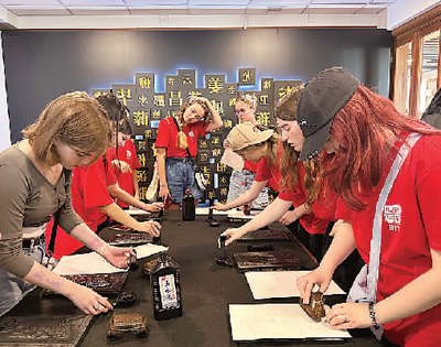 外国留学生在中华汉字文化体验园进行体验。