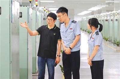 8月17日,福建省福州市长乐区税务部门工作人员,在当地一家智能制造企业了解生产情况,讲解税收优惠政策。