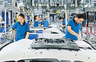 8月18日,在河南省开封市尉氏县先进制造业开发区工业园,一家汽车零配件生产企业的工人在生产线上忙碌。