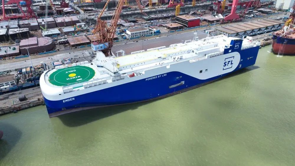 2023年9月12日,广船国际建造的7000车双燃料汽车运输船交付(无人机照片)。(中国船舶集团广船国际供图)