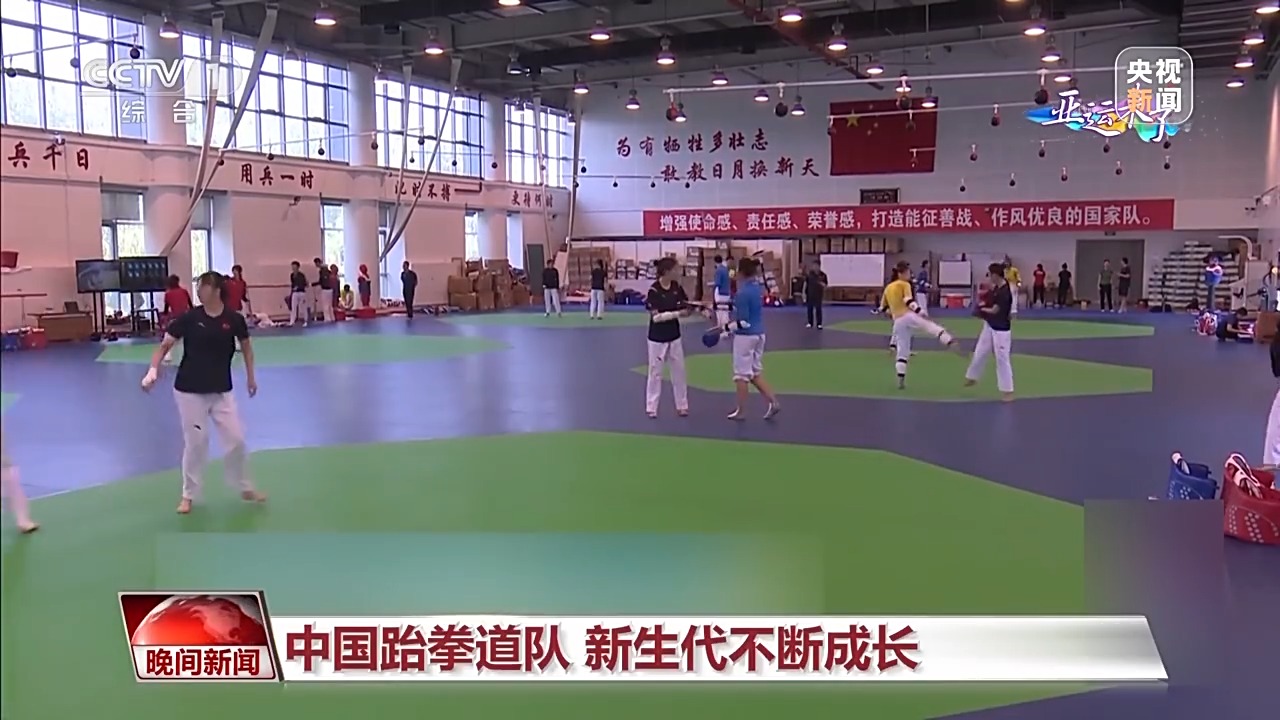 走进北京体育大学国家训练基地,中国跆拳道队正在加紧训练。上一届亚运会,中国跆拳道队在竞技比赛中获得了一枚金牌。这次亚运会,代表中国队出战的10位队员,有9位都是第一次参加亚运会,他们基本出生在2000年左右,在教练组的带领下,不断成长。