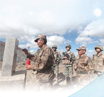 巡逻小分队在描红界碑。