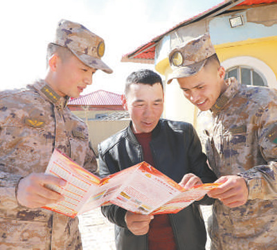连队官兵走进边关牧区宣传政策法规。