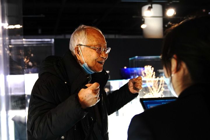 中国科学院院士汪品先在上海自然博物馆举行的“深海园林”展上介绍深海知识(2022年12月3日摄)。新华社记者 张建松 摄