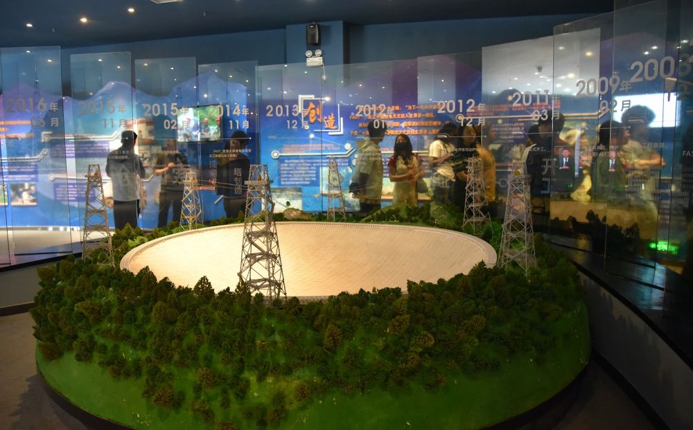 人们在贵州省平塘县参观“中国天眼”模型(2023年6月6日摄)。新华社记者 骆飞 摄
