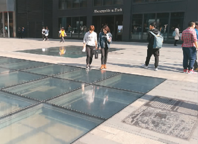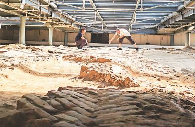 沿城守街-联升巷向北偏东方向行进不过180米,就是“2008年全国十大考古新发现”“全国重点文物保护单位”江南馆街唐宋街坊遗址,也是我每次都要来“打卡”的地方。那里发现的唐宋时期街道纵横交错,距离长,类型多。“有保留价值的,几乎全都留下了。”成都文物考古研究院的谢涛,是有30年经验的成都城市考古专家,也是当年江南馆街遗址的考古领队。这一遗址以透光玻璃幕墙进行隔离覆盖,将考古现场整体保护了下来。2023年8月末的一天,阳光明媚,谢涛领着我穿过热闹熙攘的商业广场进入地下。“带你来看真正的精彩!”他指着长达百米的铺砖街道和十字交叉街口说:“你看见的地面是宋代的,但我们向下做了‘解剖’。可以确定,从唐晚期就已经形成了这个格局,不断延续使用到南宋。”