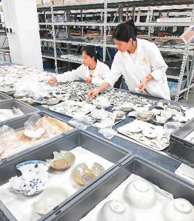 图为成都考古中心文保中心瓷器修复室的工作人员在对东华门遗址出土瓷器进行修复。