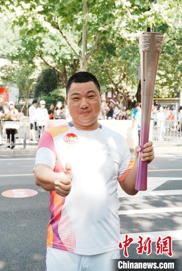 17日,杭州亚运会火炬传递金华站启动,冯旭斌担任第46棒火炬手。刘明明 供图