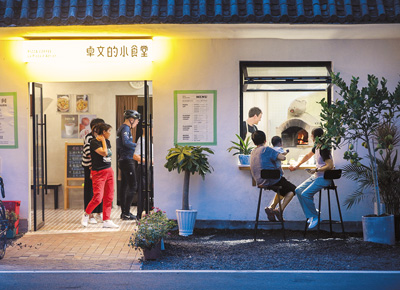 在安徽省黄山市屯溪区南溪南村的“卓文的小食堂”,把西餐做法融入徽菜,创新了“臭鳜鱼比萨”等菜品,成为当地网红餐厅。樊成柱 摄(人民视觉)