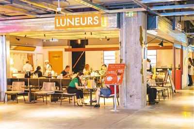 THE BOX朝外是首个在北京朝外大街街区更新项目中亮相的商业地标,吸引了不少年轻消费者前来体验。图为市民正在THE BOX朝外里享用美食。王初 摄(人民视觉)