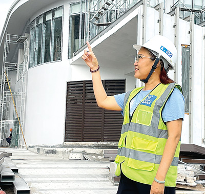 卢润燕在越南一项目现场为同事讲解工地标识布置规范。以上照片均为受访者提供