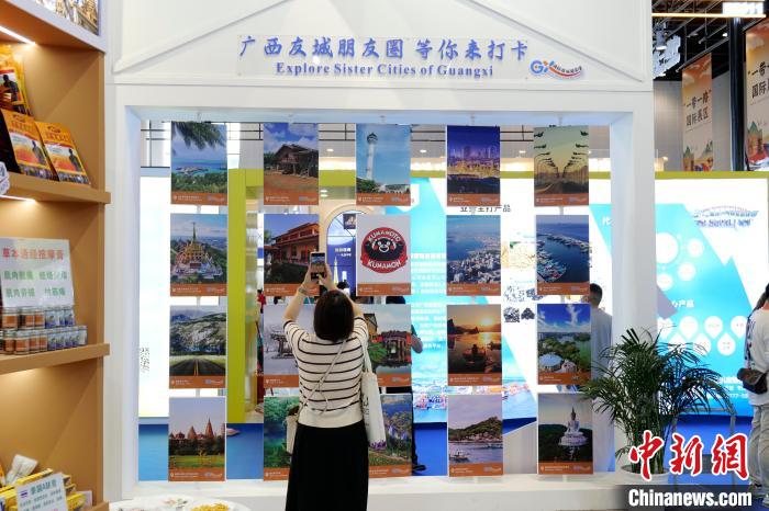 9月17日,参展民众在广西国际友城进东博展区“打卡”。廖章利 摄