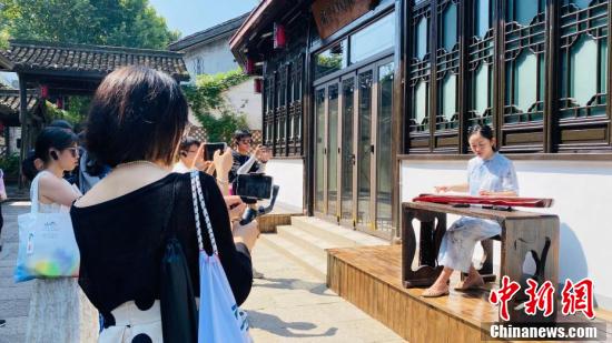 随着亚运临近,杭州城市街头亚运氛围浓厚,其中吉祥物形象受到不少民众喜爱。18日,记者来到京杭大运河的最南端——拱宸桥,探访杭州亚运会吉祥物“宸宸”的诞生地。图为拱宸桥边的运河广场。
