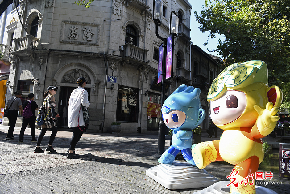 光明网讯 随着杭州亚运会的脚步越来越近,“亚运旅游热”也提前到来。9月18日下午,记者走访位于杭州市上城区的清河坊历史文化特色景区,在胡庆余堂、四拐角近代建筑等景点,不少旅客打卡游玩,感受历史文化与亚运活力交融的杭州魅力。(光明日报记者 刘习 光明网记者 潘迪)