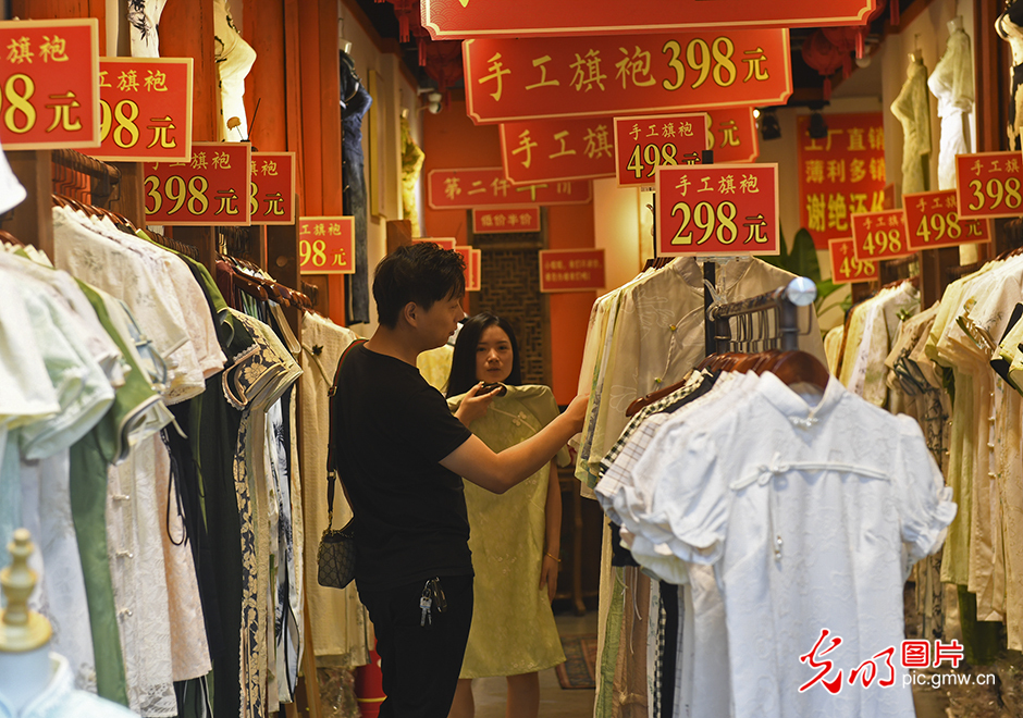 2023年9月18日,游客在杭州市上城区清河坊历史文化特色景区购物。(光明网记者 潘迪摄/光明图片)