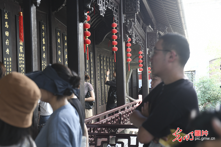 2023年9月18日,游客在杭州市上城区清河坊历史文化特色景区胡庆余堂拍照。(光明网记者 潘迪摄/光明图片)