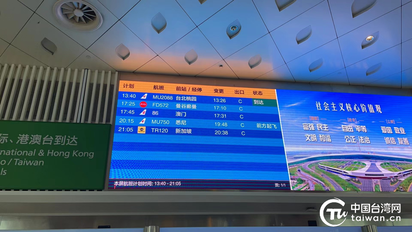 9月18日13时26分许,台北直飞武汉的东航武汉公司MU2088航班平稳降落在武汉天河机场。(中国台湾网 发)