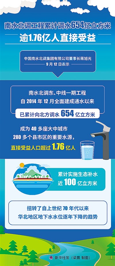 南水北调东、中线一期工程全面通水运行以来,工程综合效益持续有效发挥,截至目前,已累计调水654亿立方米,成为沿线40多座大中城市280多个县市区的重要水源,直接受益人口超过1.76亿人。南水北调工程已成为优化水资源配置、保障群众饮水安全、复苏河湖生态环境、畅通南北经济循环的生命线。