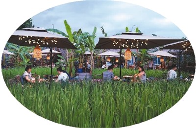 人们在重庆市正码头广场“稻田餐厅”用餐。秦廷富 摄(人民图片)