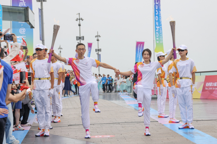 9月20日上午,杭州亚运会火炬传递杭州站起跑仪式在杭州城市阳台举行。