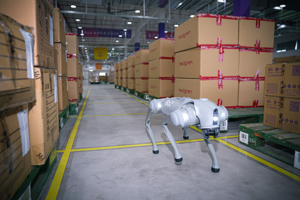 9月13日,机器狗在杭州亚运会物流中心内执行巡检工作。新华社记者江汉 摄