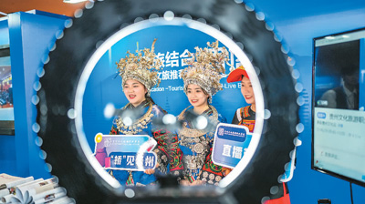 贵州文化旅游职业学院学生在交流周活动上直播。新华社记者 陶亮 摄