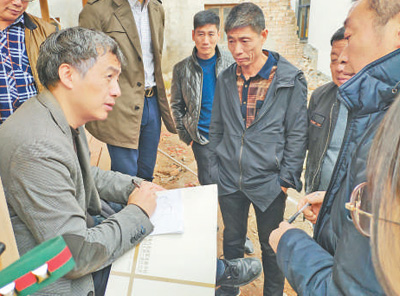 杨贵庆(左一)在黄岩区高桥街道瓦瓷窑村与当地干部和村民探讨规划方案。